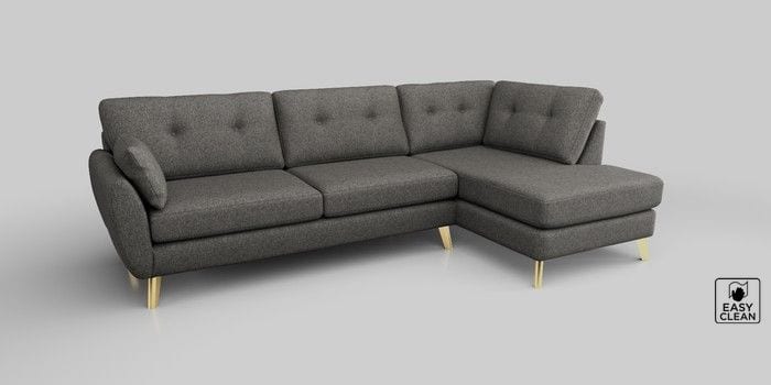 6.12.1 Buy Wilson Buttoned Back Large Corner Chaise - Right Hand Tweedy Blend Easy Clean Dark Grey Metal Tapered - Gold from the Next UK online shop Click here to use our accessible website