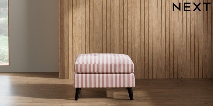7.2.10 Buy Wilson Buttoned Back Footstool Bold Chenille Stripe Dark Pink Retro Tapered - Dark from the Next UK online shop Click here to use our accessible website