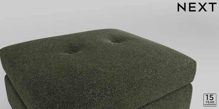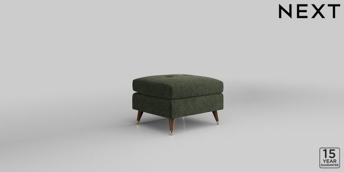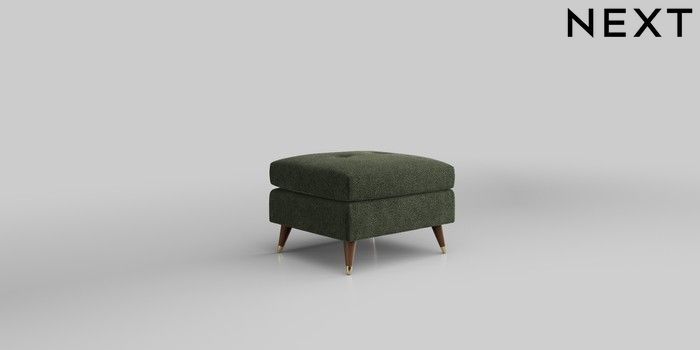 6.12.1 Buy Wilson Buttoned Back Footstool Boucle Chenille Dark Moss Green Low Retro Tapered Metal Cap - Mid from the Next UK online shop Click here to use our accessible website