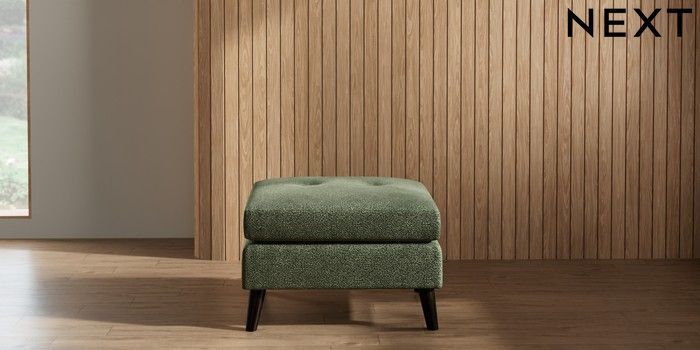 7.2.10 Buy Wilson Buttoned Back Footstool Boucle Chenille Dark Moss Green Retro Tapered - Dark from the Next UK online shop Click here to use our accessible website