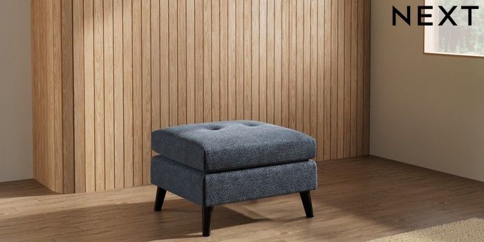 7.3.1 Buy Wilson Buttoned Back Footstool Boucle Chenille Dark Slate Blue Retro Tapered - Dark from the Next UK online shop