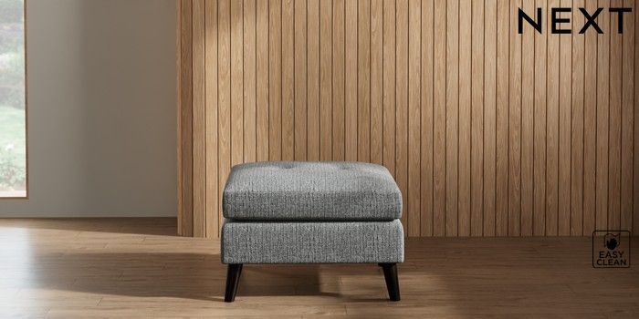 7.2.10 Buy Wilson Buttoned Back Footstool Chunky Boucle Easy Clean Mid Grey Retro Tapered - Dark from the Next UK online shop Click here to use our accessible website
