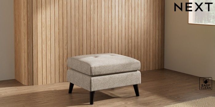 7.3.1 Buy Wilson Buttoned Back Footstool Chunky Boucle Easy Clean Mid Natural Retro Tapered - Dark from the Next UK online shop