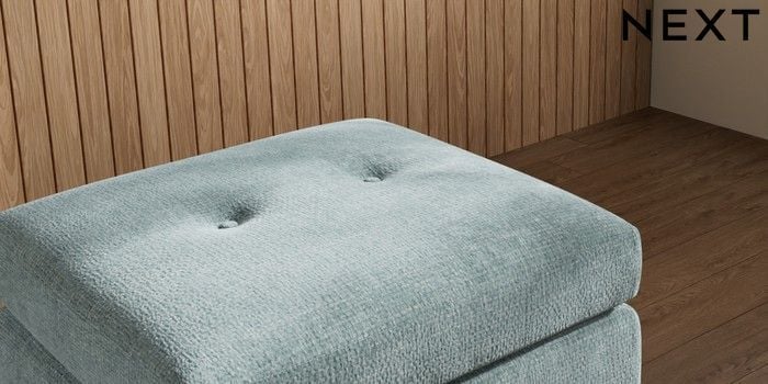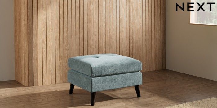 7.3.1 Buy Wilson Buttoned Back Footstool Chunky Chenille Light Teal Green Retro Tapered - Dark from the Next UK online shop