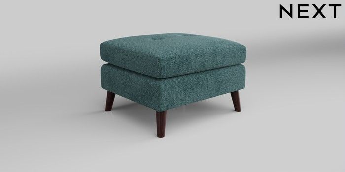 7.0.3 Buy Wilson Buttoned Back Footstool Chunky Chenille Mid Teal Green Retro Tapered - Dark Brown from the Next UK online shop Click here to use our accessible website