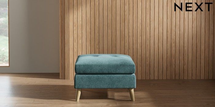 7.2.10 Buy Wilson Buttoned Back Footstool Chunky Chenille Mid Teal Green Retro Tapered - Light from the Next UK online shop Click here to use our accessible website
