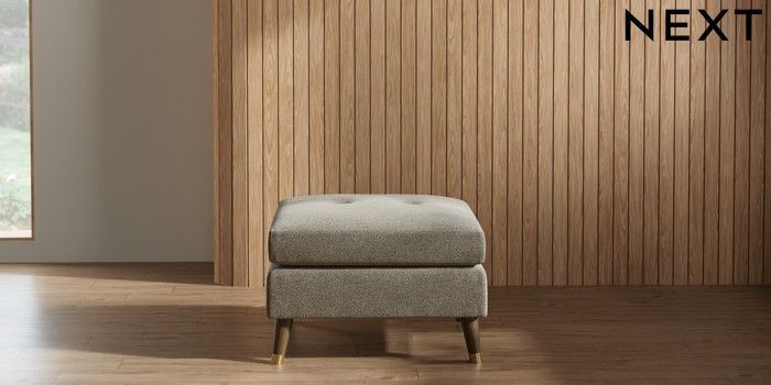7.2.10 Buy Wilson Buttoned Back Footstool Chunky Marl Light Olive Green Low Retro Tapered Metal Cap - Mid from the Next UK online shop Click here to use our accessible website