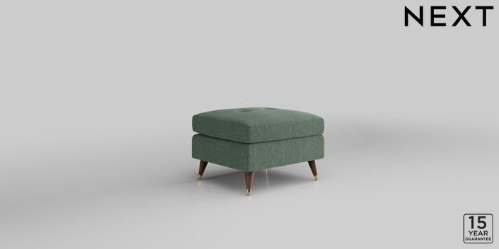 6.12.1 Buy Wilson Buttoned Back Footstool Chunky Texture Mid Forest Green Low Retro Tapered Metal Cap - Mid from the Next UK online shop Click here to use our accessible website