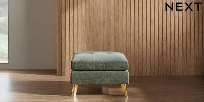 7.2.10 Buy Wilson Buttoned Back Footstool Chunky Texture Mid Forest Green Metal Tapered - Gold from the Next UK online shop Click here to use our accessible website