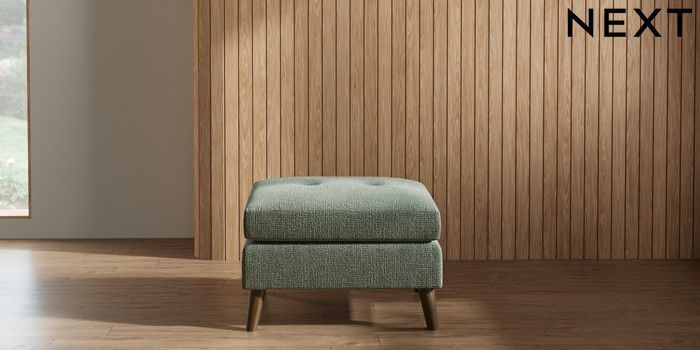 7.2.10 Buy Wilson Buttoned Back Footstool Chunky Texture Mid Forest Green Retro Tapered - Mid from the Next UK online shop Click here to use our accessible website