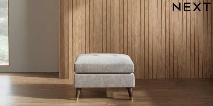 7.2.10 Buy Wilson Buttoned Back Footstool Chunky Weave Dove Grey Low Retro Tapered Metal Cap - Mid from the Next UK online shop Click here to use our accessible website