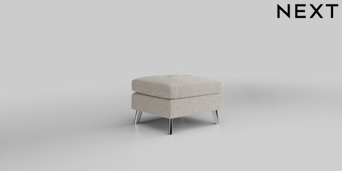 6.12.1 Buy Wilson Buttoned Back Footstool Chunky Weave Dove Grey Metal Tapered - Chrome from the Next UK online shop Click here to use our accessible website