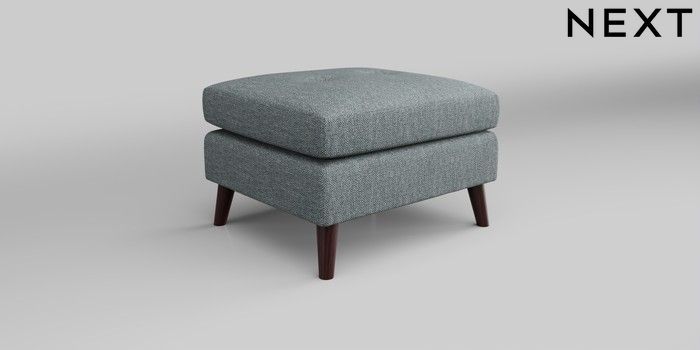 7.0.3 Buy Wilson Buttoned Back Footstool Chunky Weave Mid Blue Retro Tapered - Dark Brown from the Next UK online shop Click here to use our accessible website