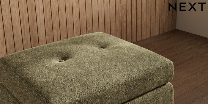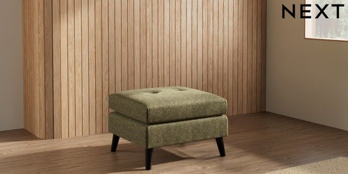 7.3.1 Buy Wilson Buttoned Back Footstool Cotswold Chenille Dark Green Retro Tapered - Dark from the Next UK online shop