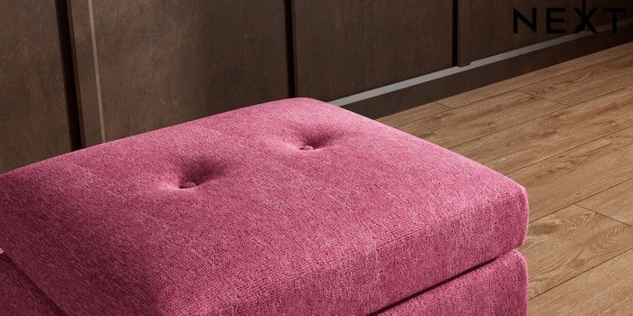 7.3.1 Buy Wilson Buttoned Back Footstool Cotswold Chenille Dark Raspberry Pink Metal Tapered - Chrome from the Next UK online shop