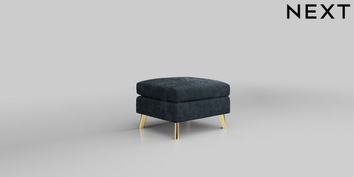 6.12.1 Buy Wilson Buttoned Back Footstool Distressed Velour Midnight Blue Metal Tapered - Gold from the Next UK online shop Click here to use our accessible website