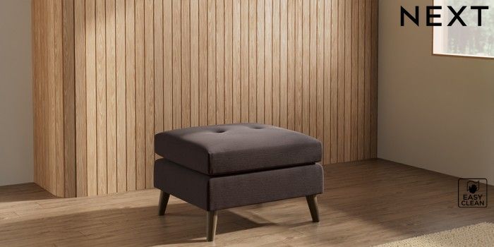 7.3.1 Buy Wilson Buttoned Back Footstool Fine Chenille Easy Clean Chocolate Brown Retro Tapered - Mid from the Next UK online shop Click here to use our accessible website