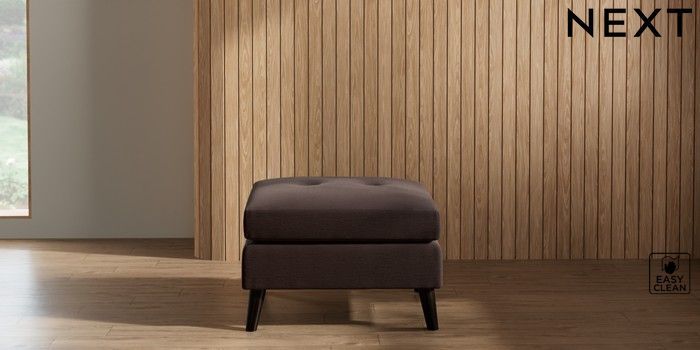 7.2.10 Buy Wilson Buttoned Back Footstool Fine Chenille Easy Clean Chocolate Brown Retro Tapered - Dark from the Next UK online shop Click here to use our accessible website