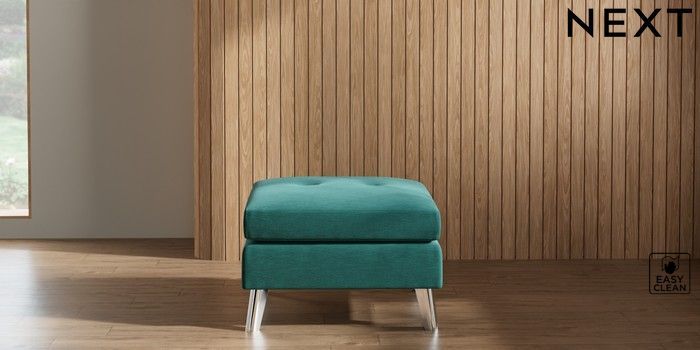 7.2.10 Buy Wilson Buttoned Back Footstool Fine Chenille Easy Clean Dark Juniper Green Metal Tapered - Chrome from the Next UK online shop Click here to use our accessible website