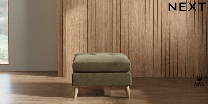 7.2.10 Buy Wilson Buttoned Back Footstool Fine Chenille Easy Clean Dark Moss Green Retro Tapered - Light from the Next UK online shop Click here to use our accessible website