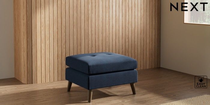 7.3.1 Buy Wilson Buttoned Back Footstool Fine Chenille Easy Clean Dark Navy Blue Retro Tapered - Mid from the Next UK online shop Click here to use our accessible website