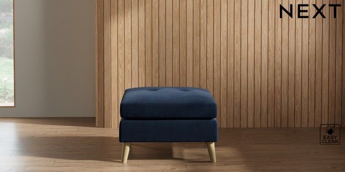 7.2.10 Buy Wilson Buttoned Back Footstool Fine Chenille Easy Clean Dark Navy Blue Retro Tapered - Light from the Next UK online shop Click here to use our accessible website