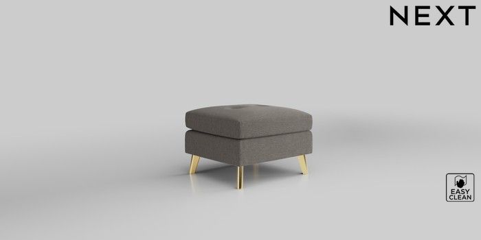 6.12.1 Buy Wilson Buttoned Back Footstool Fine Chenille Easy Clean Dark Smoke Grey Metal Tapered - Gold from the Next UK online shop Click here to use our accessible website