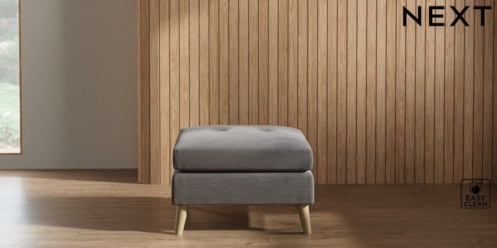 7.2.10 Buy Wilson Buttoned Back Footstool Fine Chenille Easy Clean Dark Smoke Grey Retro Tapered - Light from the Next UK online shop Click here to use our accessible website