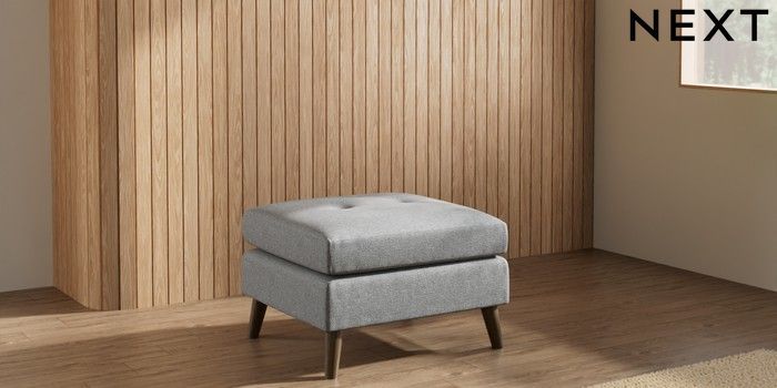 7.3.8 Buy Wilson Buttoned Back Footstool Chunky Weave Mid Grey Retro Tapered - Mid from the Next UK online shop