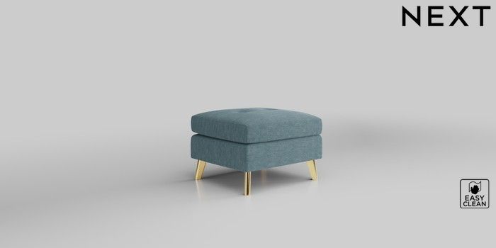 6.12.1 Buy Wilson Buttoned Back Footstool Fine Chenille Easy Clean Mid Blue Metal Tapered - Gold from the Next UK online shop Click here to use our accessible website