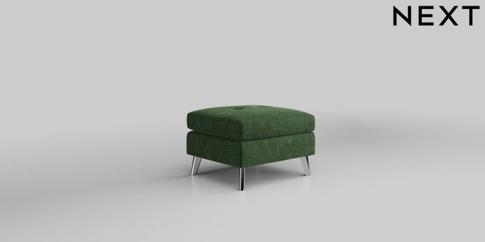 6.12.1 Buy Wilson Buttoned Back Footstool Luxe Chenille Dark Green Metal Tapered - Chrome from the Next UK online shop Click here to use our accessible website