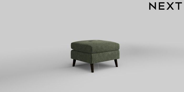 6.12.1 Buy Wilson Buttoned Back Footstool Luxe Chenille Mid Green Retro Tapered - Dark from the Next UK online shop Click here to use our accessible website