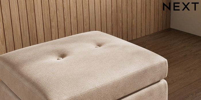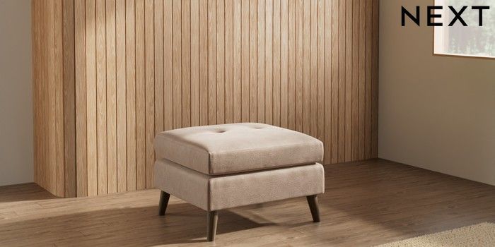 7.3.1 Buy Wilson Buttoned Back Footstool Luxe Chenille Mid Natural Retro Tapered - Mid from the Next UK online shop