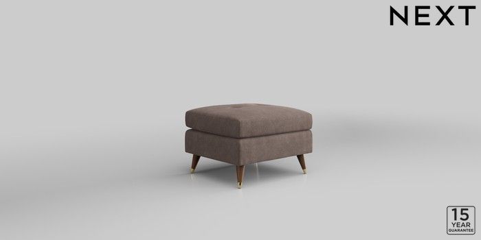 6.12.1 Buy Wilson Buttoned Back Footstool Luxe Chenille Mink Brown Low Retro Tapered Metal Cap - Mid from the Next UK online shop Click here to use our accessible website