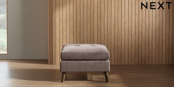 7.2.10 Buy Wilson Buttoned Back Footstool Luxe Chenille Mink Brown Retro Tapered - Mid from the Next UK online shop Click here to use our accessible website
