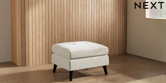 7.3.8 Buy Wilson Buttoned Back Footstool Luxe Chenille Oyster Retro Tapered - Dark from the Next UK online shop