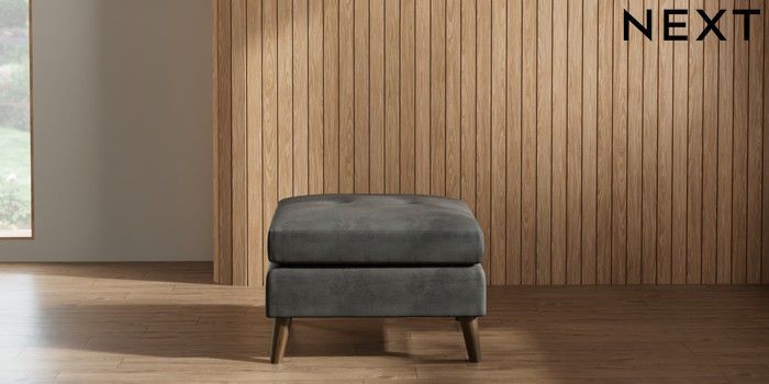 7.2.10 Buy Wilson Buttoned Back Footstool Monza Faux Leather Easy Clean Dark Grey Retro Tapered - Mid from the Next UK online shop Click here to use our accessible website