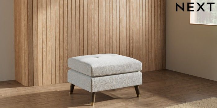7.3.1 Buy Wilson Buttoned Back Footstool Multi Weave Light Blue Low Retro Tapered Metal Cap - Mid from the Next UK online shop