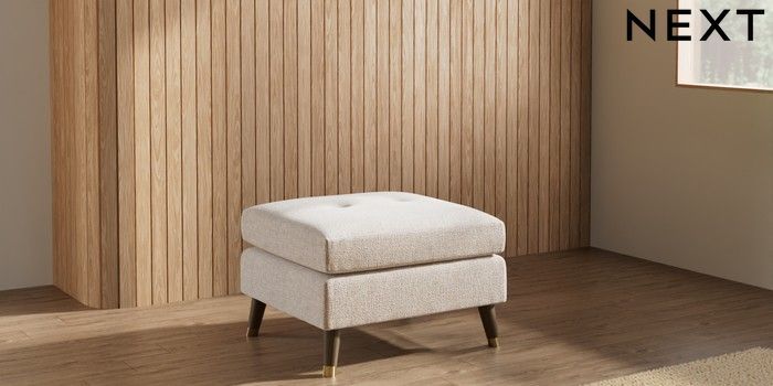 7.3.1 Buy Wilson Buttoned Back Footstool Multi Weave Mid Natural Low Retro Tapered Metal Cap - Mid from the Next UK online shop