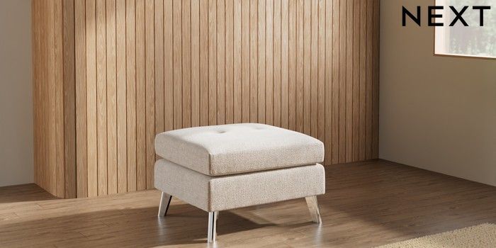 7.3.1 Buy Wilson Buttoned Back Footstool Multi Weave Mid Natural Metal Tapered - Chrome from the Next UK online shop