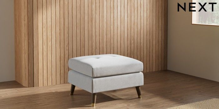 7.3.1 Buy Wilson Buttoned Back Footstool Natural Mix Light Grey Low Retro Tapered Metal Cap - Mid from the Next UK online shop