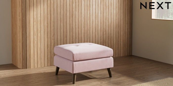 7.3.1 Buy Wilson Buttoned Back Footstool Natural Mix Light Rose Pink Retro Tapered - Mid from the Next UK online shop Click here to use our accessible website