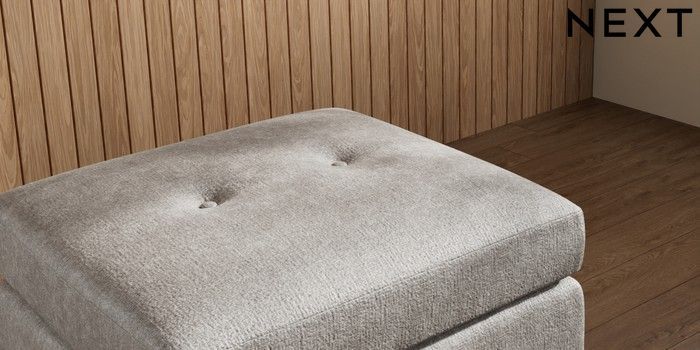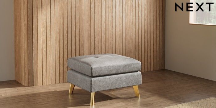7.3.1 Buy Wilson Buttoned Back Footstool Plush Chenille Light Grey Metal Tapered - Gold from the Next UK online shop