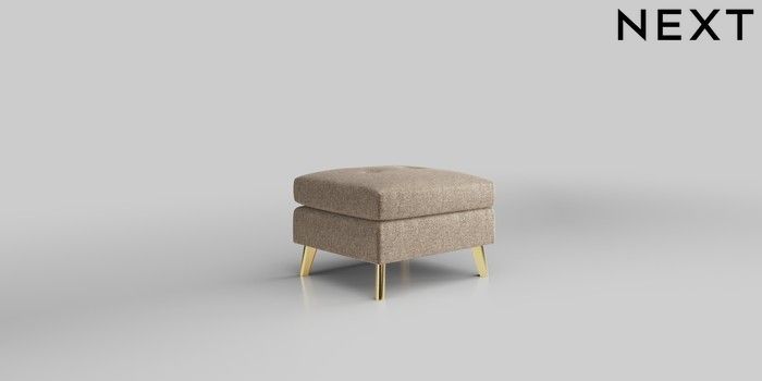 6.12.1 Buy Wilson Buttoned Back Footstool Plush Chenille Mid Natural Metal Tapered - Gold from the Next UK online shop Click here to use our accessible website
