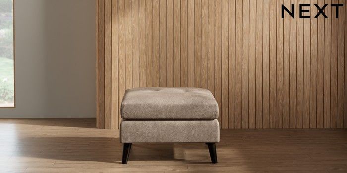 7.2.10 Buy Wilson Buttoned Back Footstool Plush Chenille Mid Natural Retro Tapered - Dark from the Next UK online shop Click here to use our accessible website