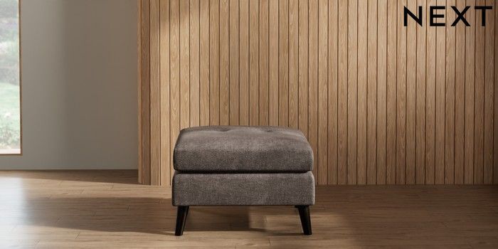 7.2.10 Buy Wilson Buttoned Back Footstool Plush Chenille Mink Brown Retro Tapered - Dark from the Next UK online shop Click here to use our accessible website