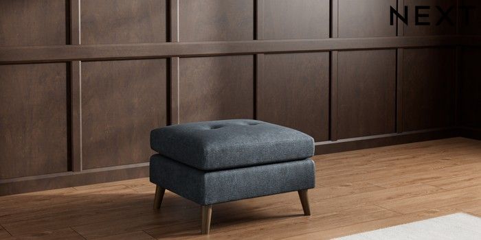 7.3.1 Buy Wilson Buttoned Back Footstool Plush Chenille Slate Blue Retro Tapered - Mid from the Next UK online shop Click here to use our accessible website