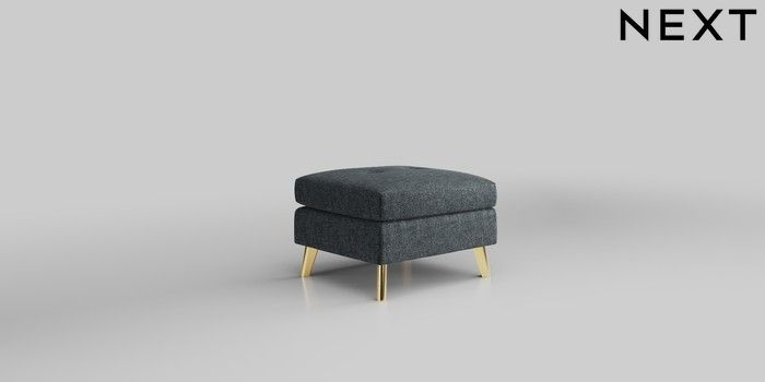6.12.1 Buy Wilson Buttoned Back Footstool Plush Chenille Slate Blue Metal Tapered - Gold from the Next UK online shop Click here to use our accessible website