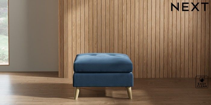 7.2.10 Buy Wilson Buttoned Back Footstool Plush Velvet Easy Clean Airforce Blue Retro Tapered - Light from the Next UK online shop Click here to use our accessible website