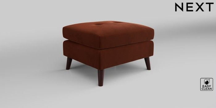 7.0.3 Buy Wilson Buttoned Back Footstool Plush Velvet Easy Clean Ginger Orange Retro Tapered - Dark Brown from the Next UK online shop Click here to use our accessible website